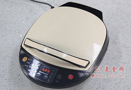 7、所有圆饼都做好以后,就可以预热电饼铛了。将利仁电饼铛上下盘一起预热。
