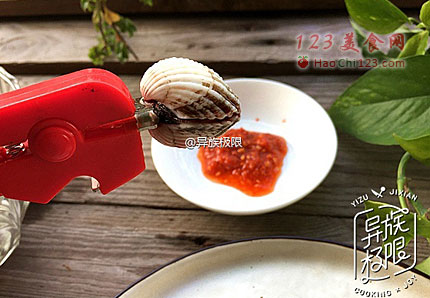 7、掰一个蚶蘸一点三渗酱,趁热吃掉。