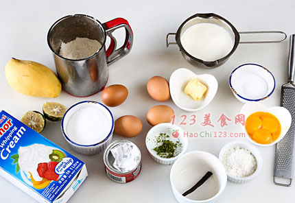 10、吃前切片糖粉和芒果装饰。