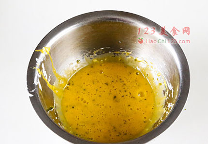 2、蛋白、蛋黄分离。蛋黄加柠檬屑调味混合。