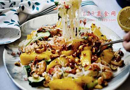贴士:对于东南亚,我一直有着最特别的喜爱,不仅爱那蓝天碧海,更迷恋那四季都洋溢着的热带风情,而这钟情的泰国菜里最不可缺少的就是柠檬,辣椒,散发浓郁的水果清香同时品尝辣椒带来的泌人心脾口感。这道泰国南吉姆虾芒果沙拉,很好的平衡了甜,酸,咸,辣,香甜多汁足够刺激你的味蕾,完美的结合在一起,尝完保你会连盘都舔得干干净净。[LaoYanHuo.com]