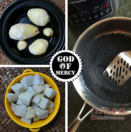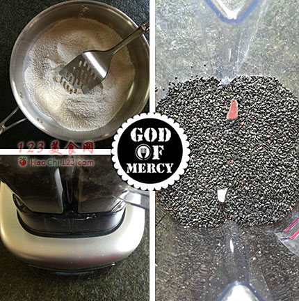 3、黑芝麻洗净;沥干水分。放进锅中小火慢烘,炒熟飘出香味。