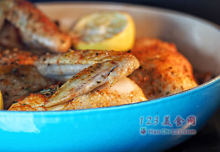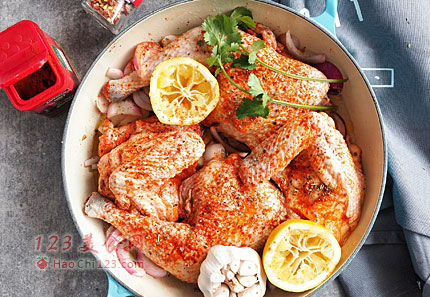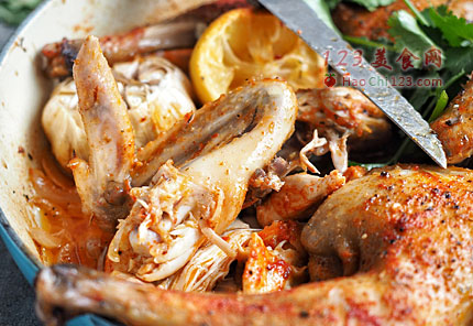 1、这道烤鸡,由于烤碗底部有橄榄油,有白葡萄酒,还有柠檬汁,吃起来有烟熏红椒粉的香味和柠檬汁的酸味,烤制过程中,烤盘顶部封上锡纸,在烤箱里就是一个封闭的蒸烤形式,加热底部的液体烘烤整鸡,能让鸡肉熟又不会干柴,经过慢烤1小时,鸡肉熟了,再揭开锡纸开高温220度烤,是为了让鸡皮烤焦,吃起来有焦香味。其实,这个步骤我只烤了10分钟,鸡皮并不脆,还是嫩嫩的,你们喜欢吃上色焦脆的鸡皮,可以自己延长时间,或者把蒸烤的时间缩短到50分钟,提前揭开锡纸来烤制,就会烤出诱人的焦黄色脆卟卟的鸡皮哦。