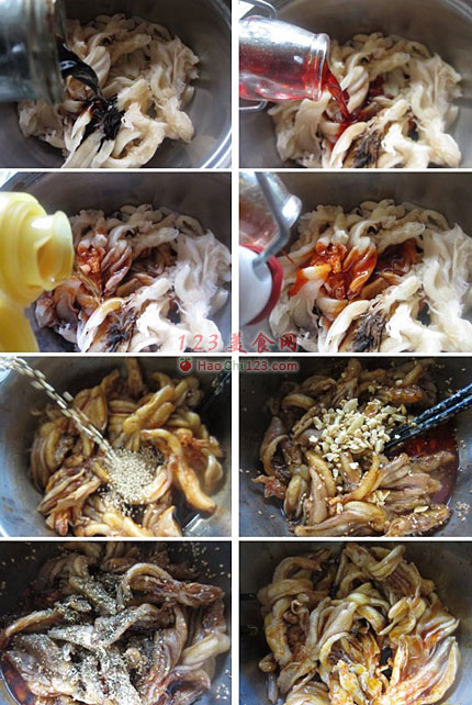 3、花椒末现炒现打碎,味道才能够香够麻。黄瓜丝我喜欢用黄瓜皮,口感脆,水分少豆豉切碎一点拌入鸭掌味道会更牢牢地贴在鸭掌上,蒜蓉可以多放一点,蒜的辣味和红油的辣味交相辉映,精彩极了。[LaoYanHuo.com]
