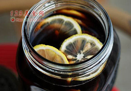 5、材料全部加入瓶内后,密封放置阴凉处(我是把它存放在冰箱里了),浸泡约30天后,将柠檬全部捞出。
