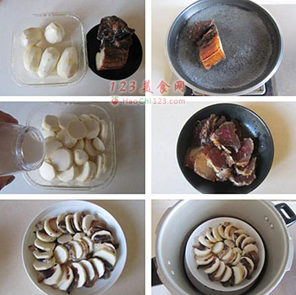 1、腊肉表面上会有很多灰尘,因此先须用热水清洗干净。