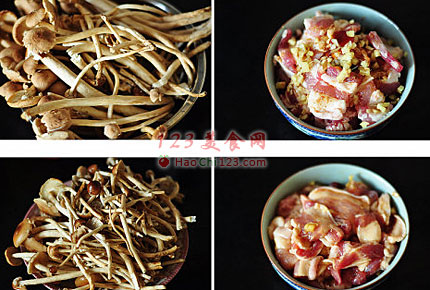 3、我用的新鲜茶树菇,但我猜想干茶树菇可能做这个更好吃,因为我想干香菇比新鲜香菇香,笋干神马的干类炖肉更能吸收肉的美味而增色,因此推测干茶树菇也是如此吧。