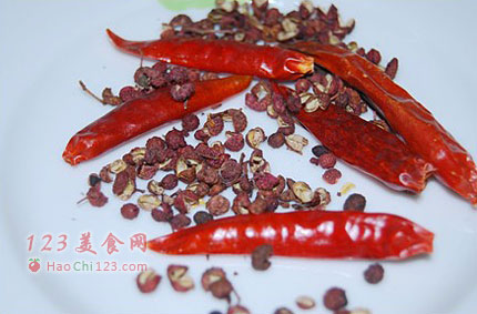 2、锅中放入色拉油,油热后放入干辣椒和花椒炸香后捞起。