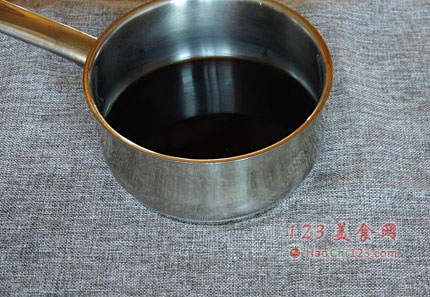 2、所有酱料原料放入锅中,中小火加热到浓稠,剩1/2。