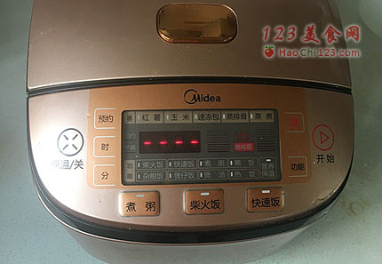 5、一个程序完成,打开盖子,进行收汁(电饭煲盖着盖子的时候,是不熬水的,所以鸡肉熟烂之后,将盖子打开,然后工作10分钟左右,让蒸汽跑出,汤汁收浓)。