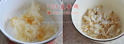 2、银耳是必须要放的,这里面的银耳不用熬到特别浓稠,只要有点粘稠度就可以了。