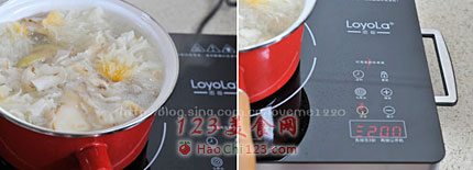 6、所有食材都放进去之后,打开电源。准备熬制(如果没有电陶炉用普通煤气灶也可以)。