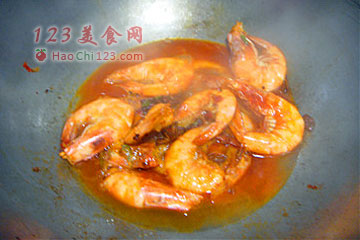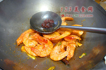 5、然后加入辣酱炒香。