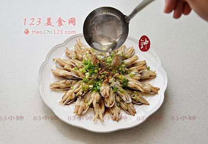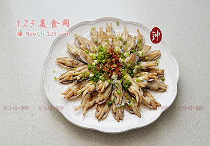 6、葱油蛏子是非常适合一家老小一起食用的快手营养小菜。