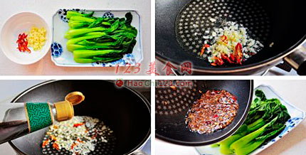 4、出香味后沥到油菜上即可。