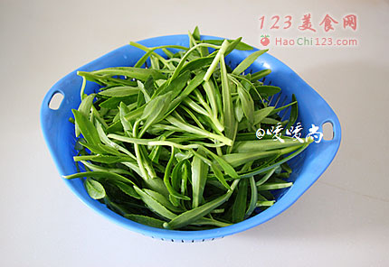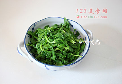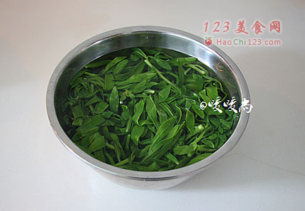 4、冰水冰过后的养心菜稍稍攥一下水分备用。
