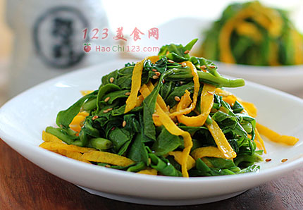 6、养心菜、鸡蛋丝和料汁调匀,腌制15分钟后食用味道更佳。[LaoYanHuo.com]