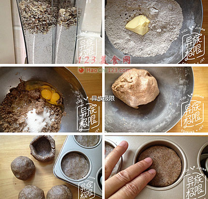 8、从烤箱里取出的燕麦盅脱模,放凉。