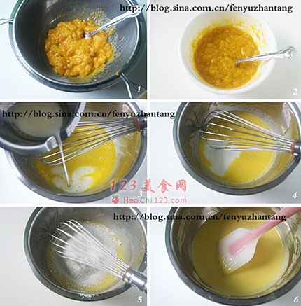 1、芒果泥一定要处理,如果直接烘烤会出很多水,体积会缩小,造成蛋糕里面较空。至于低粉的量仅供参考,根据芒果的湿润度增加或减少。