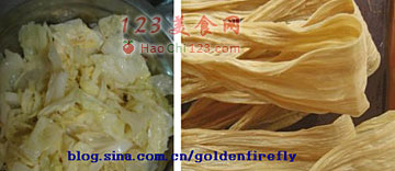 4、高麗菜及豆腐皮洗淨,準備一鍋熱水川燙八分熟,備用。