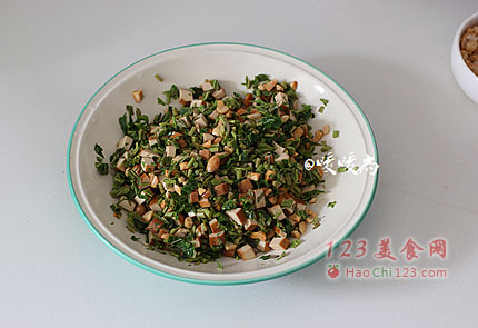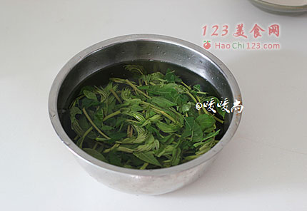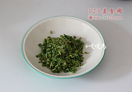 5、捞出攥干水分后切成香椿末。