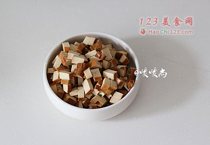 6、五香豆干洗净切丁。