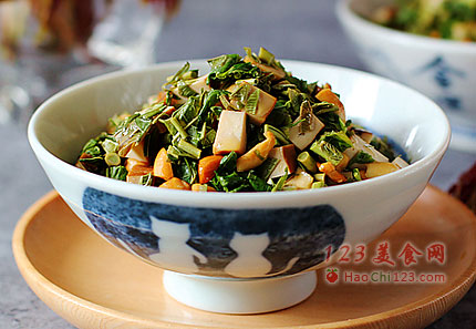 2、五香豆干本身有咸度,所以调味时要注意盐的用量,太咸了反而会让香椿的香味失色。[LaoYanHuo.com]
