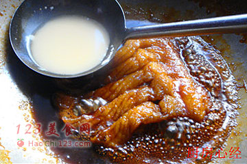 10、当汤汁浓稠时,淀粉勾芡收汁即可。