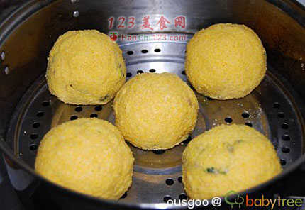 4、将包好的团子上锅蒸,水开后15分钟即可。