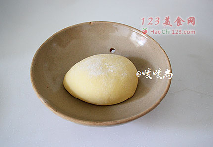 4、醒好的面团重新揉两分钟至表面光滑后揉成团(可分割成若干等份后操作)。