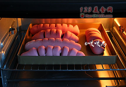 8、二发结束后,面包胚表面不刷任何东西,烤箱提前预热至180度,将烤盘放进烤箱中下层,上下火烤15-16分钟即可,面包出炉后趁热刷以上一层蜂蜜水,晾凉后即可食用。
