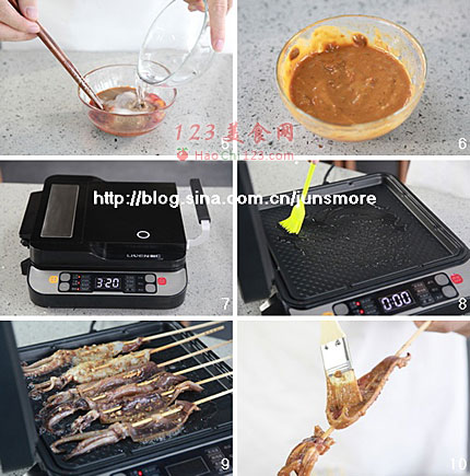 1、近一年来,应该有很多童鞋跟着我用电饼铛做过不少美食,主要是各种饼类。不过电饼铛不仅仅可以做饼,做烧烤也是相当拿手。这道铁板鱿鱼,不仅需要准备烧烤料,还需要准备海鲜酱,原料虽然多,但味道十分地道,让你能体会到原汁原味的铁板烧烤感觉,从此告别烧烤店哈。