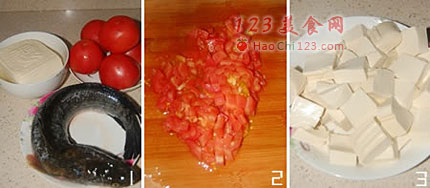 3、豆腐切块备用。