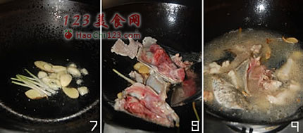 7、油锅入葱,姜,蒜爆香。