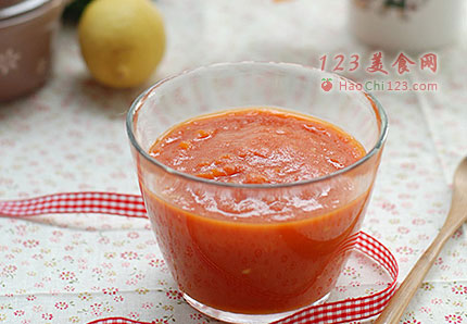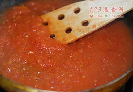 2、喜欢更加细腻些口感的,可以先把番茄丁放搅拌机打成糊,再熬制;