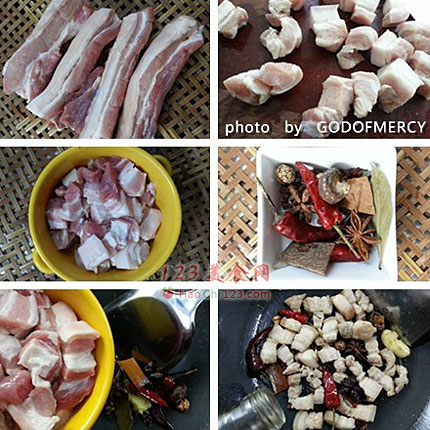 3、五花肉要做出香味;肥的和瘦的部分都要将水分完全烧出。