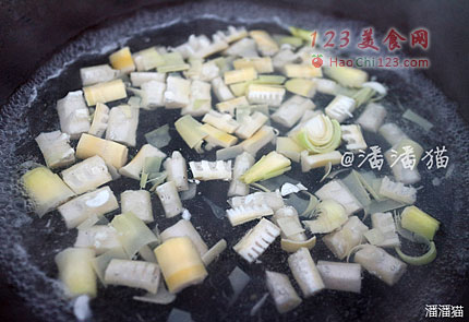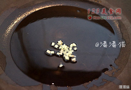 4、为了让这道菜更好吃,我用山茶油来炒菜,炝锅时只放了姜末。