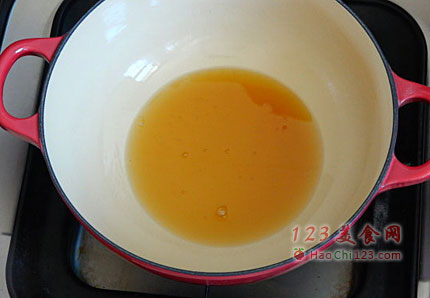 1、锅中放入香油。