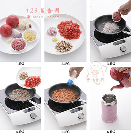 2、用焖烧杯做意面,是为了方便带孩子出门的妈妈们,提前在家把意面酱做好带着,再用焖烧杯焖熟意面,这样意面是热的,拌上酱温度正好,很适合宝宝外出吃。