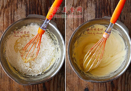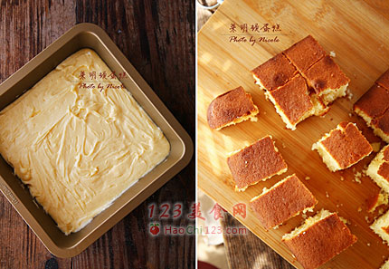 贴士:1、如果蛋糕糊不易刮平,可以在预热烤箱时使其稍稍加热,震平后再放入。
