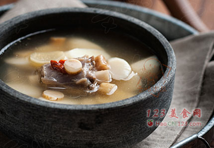6、煮到两个半小时的时候,打开锅盖放入山药,继续煲30分钟。