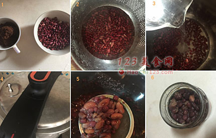 5、限压阀落下后,开盖捞出红豆,喜欢颗粒的不要搅拌,喜欢沙的,碾碎成沙。