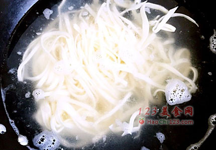 9、把擀好的面条放入锅里,煮熟,捞出面。