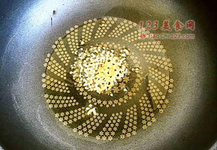 5、炒锅置火上,放油,烧至5成热,放入姜末爆香。