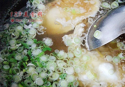 4、起锅前撒入葱花或香菜,不喜欢这两样的可以省略。
