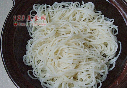 6、可以随时尝尝,面条煮至无硬芯了,马上捞出,过凉,沥干,盛入碗中。