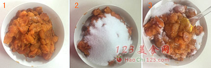 4、不加水,用糖腌渍一晚,出水后熬制也可以。我家喜欢稀一点,加水熬制。