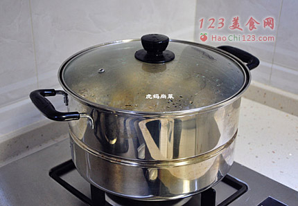 3、端至火上,凉水,大火,开锅后蒸三分钟,至能闻到淡淡的鲜味,然后关火,但不要打开盖子,锅就放在灶台上,再继续焖两分钟即可。