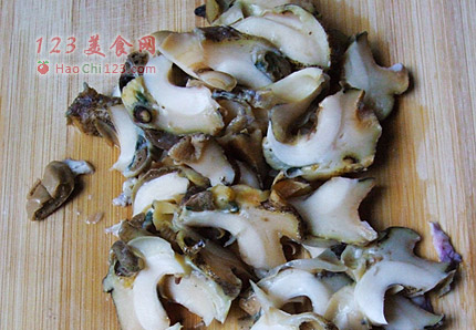 4、螺肉片得越薄越容易入味。