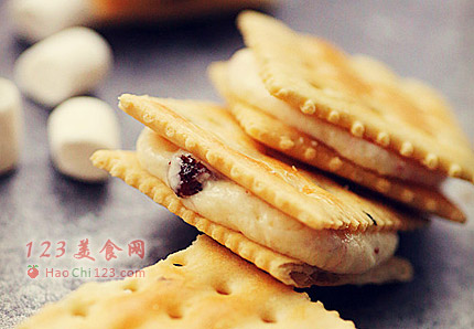 2、饼干选用咸味的刚好与糖的甜度融合。
